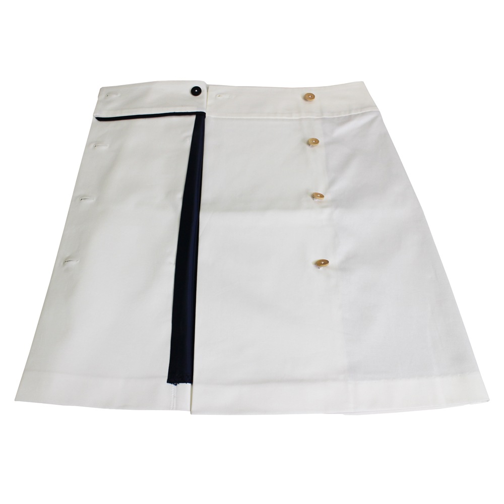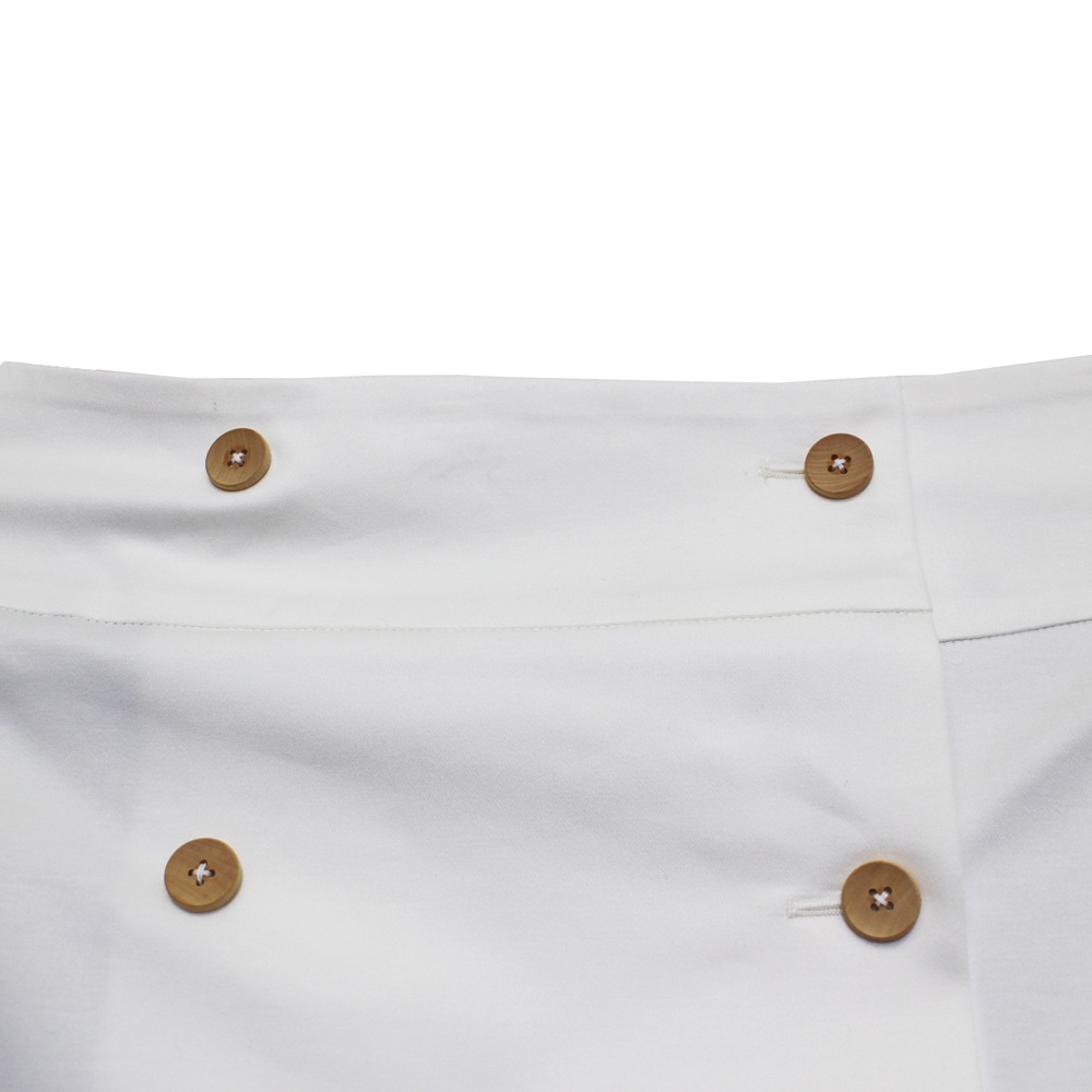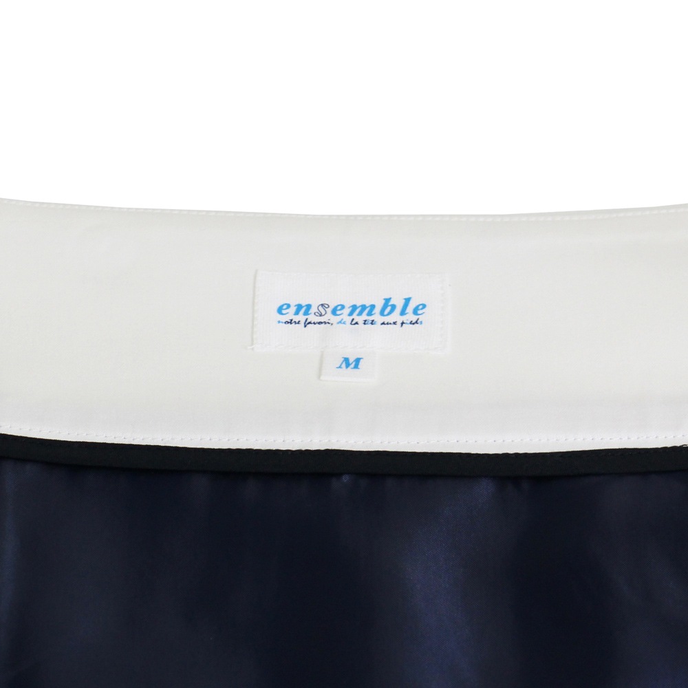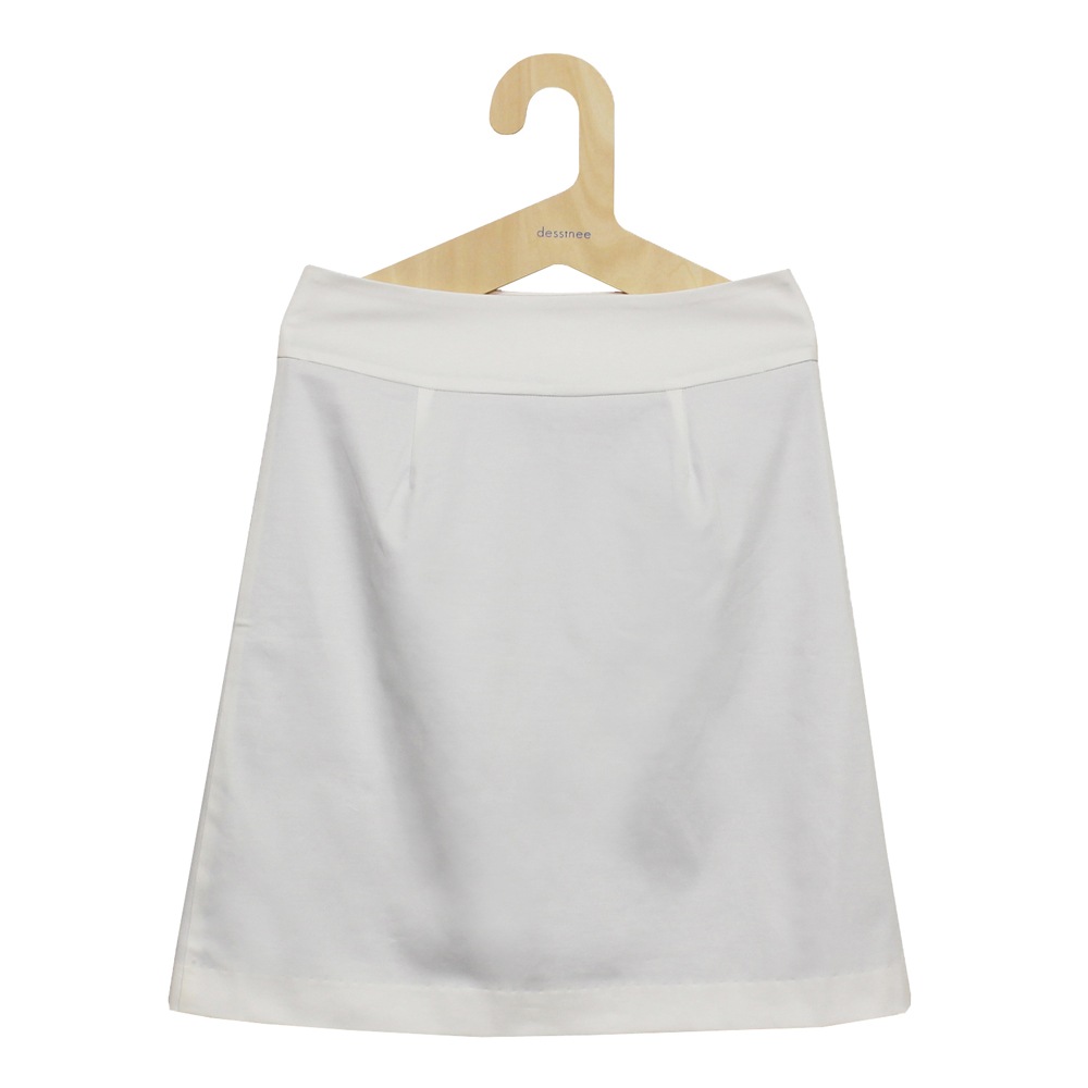 『デシネ』のオリジナルブランド『ensemble dessinee (アンサンブル・デシネ)』のコットン・スカート。合わせ易いシルエットとトレードマークの木製ボタンがアクセントになってます。