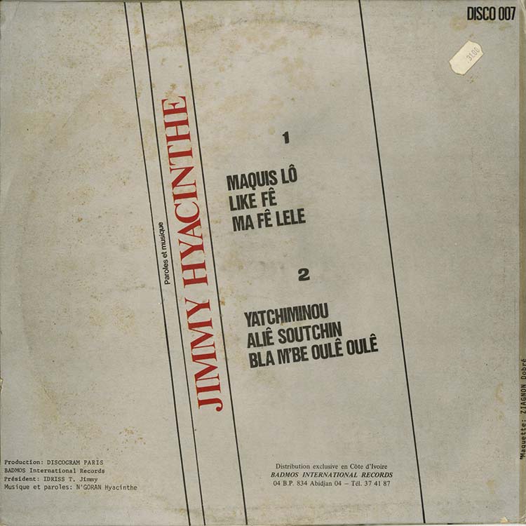アフロ・メロウステッパーな極上のモダンソウル「B2. Alie Soutchin」、ソリッドなアフロブギー/ディスコ「B1. Yatchiminou」が絶品。コートジボワールの男性SSW、Jimmy Hyacintheの1979年のデビュー作?レゲエ調の「A1. Maquis Lo」も好曲です。