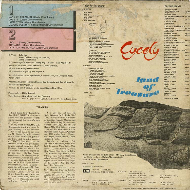 ナイジェリア産ニュージャックスウィング/シンセブギー「A2. Love Is」がナイス・ダンサー。ナイジェリアの女性シンガーCycely [Cicely Omonhinmin]の1990年の作品。基本は当時の欧米のヒット曲の影響を感じさせるシンセポップ/ディスコ的なサウンドですが、レゲエっぽい「B2. I Do」、哀愁を感じさせるR&Bの「B3. Light Of The World」なども上々です。
