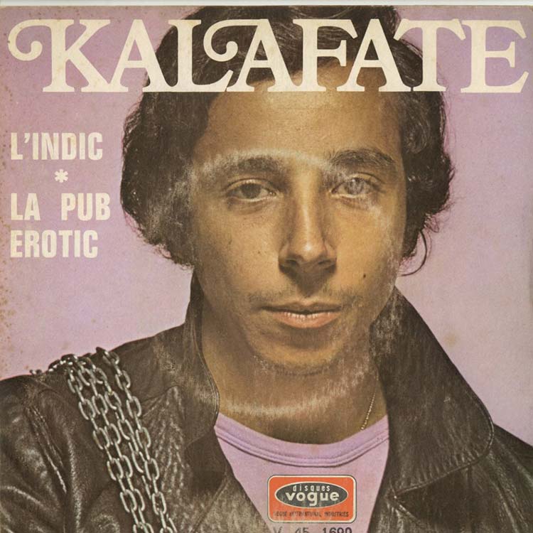 軽快な60sフレンチグルーヴ/ポップ「A1. L'indic」がご機嫌。的確なビート&走るベースに乗せ、弾けたピアノがリードを取る極上のポップチューンで、中毒のごとく脳味噌にこびりつく"パパパ"コーラスに、メロディラインも愛らしく自然と体が踊り出してしまうようなウキウキ系の傑作です。転がるピアノの音色もたまらない。フランスの人気者Jacques Dutroncが手掛けた男性シンガーKalafateの1969年のシングル。何故に鎖&革ジャン?な風貌とは裏腹に爽快な歌声で楽しませてくれます。