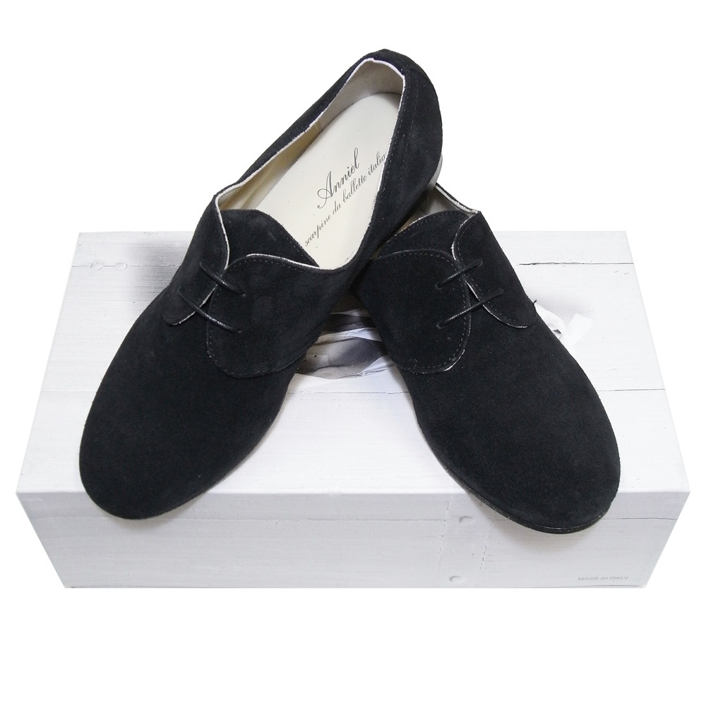 1976年に創業し、元々はバレエシューズの専業メーカーとして永らく活動を続けるイタリアのシューズブランド、『Anniel (アニエル)』。その長きに渡る活動から得た、まさに匠の技が為せる抜群のフィット感を誇るしなやかな革と、履いていることを意識させない履き心地、そしてクセの無いデザインがマッチしています。また全ての製造工程がイタリアで行われており、“Made in Italy”に対するこだわりも素晴らしいです。こちらは、シンプルなラウンド・デザインが映える。二つ穴のダービーシューズ(プレーントゥ)です。非常に柔らかな革に包み込まれるような履き心地、ドレス使用にも耐えられるスッキリしたデザインも普遍の魅力です。