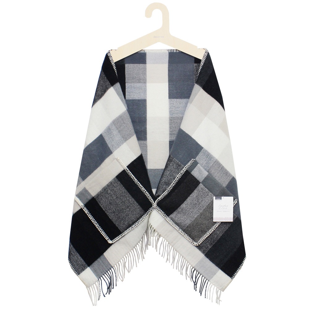基本、何気ない大きめのウール・ショールなのですが、ポケットがあるだけで全然羽織った時の気分が変わるのが不思議です。どんなスタイルにもマッチするのは、そのシンプルさ故でしょうか?女性だけでなく、男性にも使って頂きたい逸品です。贈り物にも最適ですね。(mm)