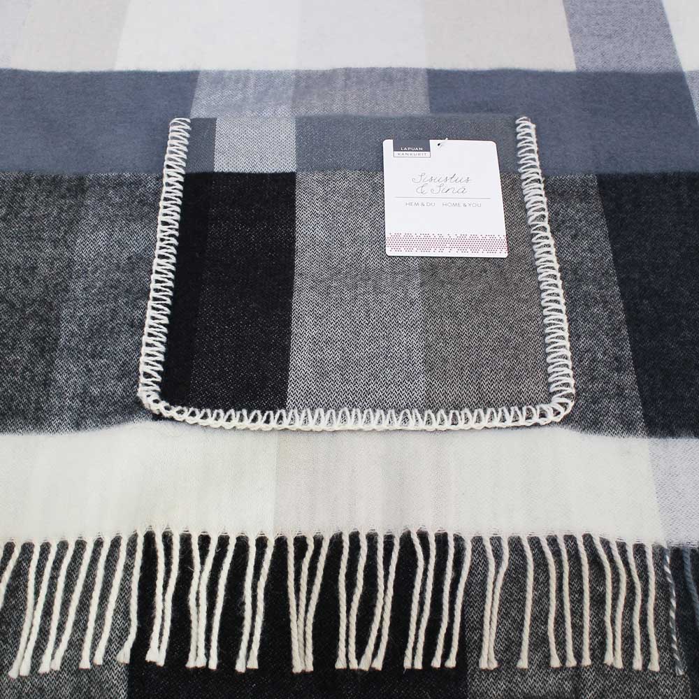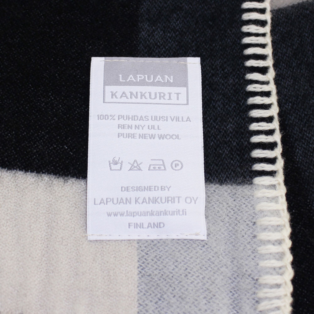フィンランドの北西部の小さな町ラプアで1973年ジャガード機を導入し、タペストリーの生産からスタートしたブランド『Lapuan Kankurit (ラプアン・カンクリ) 』。「ラプアの織り手たち」を意味するブランド名通り、厳しい審査基準をパスした高品質ヨーロッパリネン製品に与えられる唯一の称号"Masters of Linen"の認定を受けている由緒あるブランドです。特にブランドの定番でもある、大きなポケットとフリンジが特徴のポケット・ショールは、室内では膝掛けとして、外出用にはストールとしても使用できる、デザイン性と機能性を両立した素晴らしいアイテムです。Marja Rautiainenによるデザインの「PALAPELI / Pocket Shawl」は、白いウールとの組合せで織られた大きめのチェックがカジュアルな印象です。定番ショール「UNI」、「MARIA」と比べても軽く、その印象もまた軽やかです。