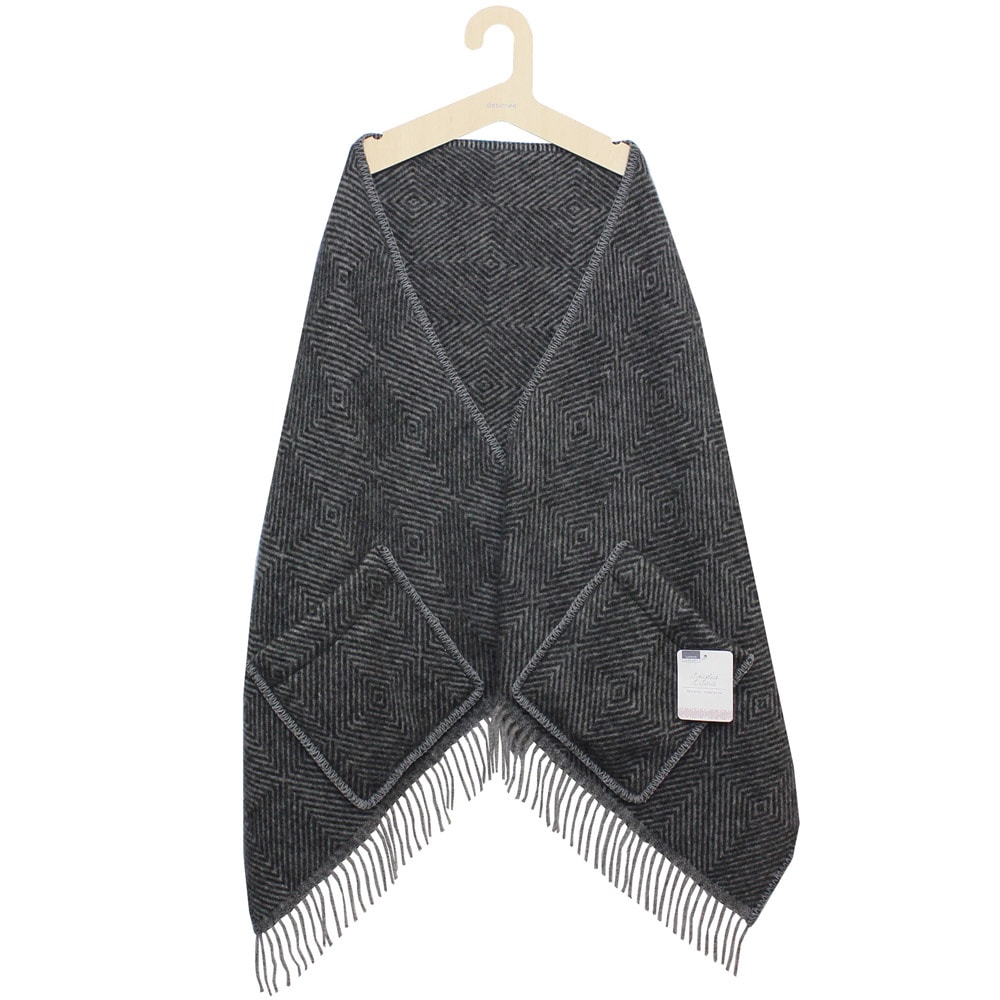 基本、何気ない大きめのウール・ショールなのですが、ポケットがあるだけで全然羽織った時の気分が変わるのが不思議です。どんなスタイルにもマッチするのは、そのシンプルさ故でしょうか?女性だけでなく、男性にも使って頂きたい逸品です。贈り物にも最適ですね。(mm)
