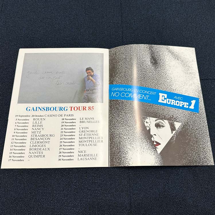 フランスが生んだ偉大で異質な才人Serge Gainsbourgが1985年に行なったフランスツアー『Gainsbourg Tour 85』のツアーパンフ。センス抜群のアートワークで楽しめます。