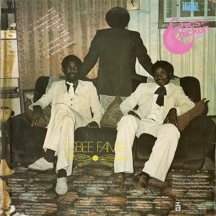 ナイジェリア産ブギー/シンセディスコ「A1. I'll Give You Love」、「A2. Let Them Do It To You」、「A3. Miss Holiday」、「B1. Chics And Chicken」など好曲目白押し。ナイジェリアの男性3人組、Esbee Familyの1980年の快作。ジャケとか、グループ名とか気になるポイント多いですw が、軽妙なシンセと欧米のディスコの影響を感じさせるサウンドが格好良いです。時にはモダンソウル的でもありますね。