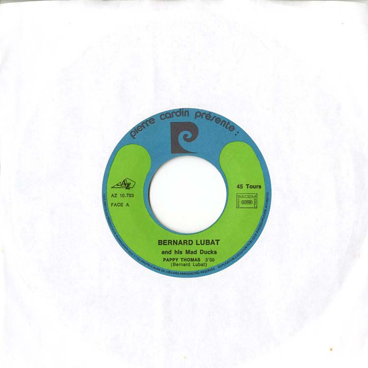 重量級のビートが秀逸なフレンチジャズロック/ファンク「A1. Pappy Thomas」が格好良い。フランスの服飾ブランド『Pierre Cardin』のレーベルからリリースされた、フランスのドラム奏者、Bernard Lubatによる彼のグループ、Bernard Lubat And His Mad Ducks名義のシングル。エレガントな女性のスキャットと流麗なピアノが絡むラウンジジャズ「B1. Shouara」もステキです。